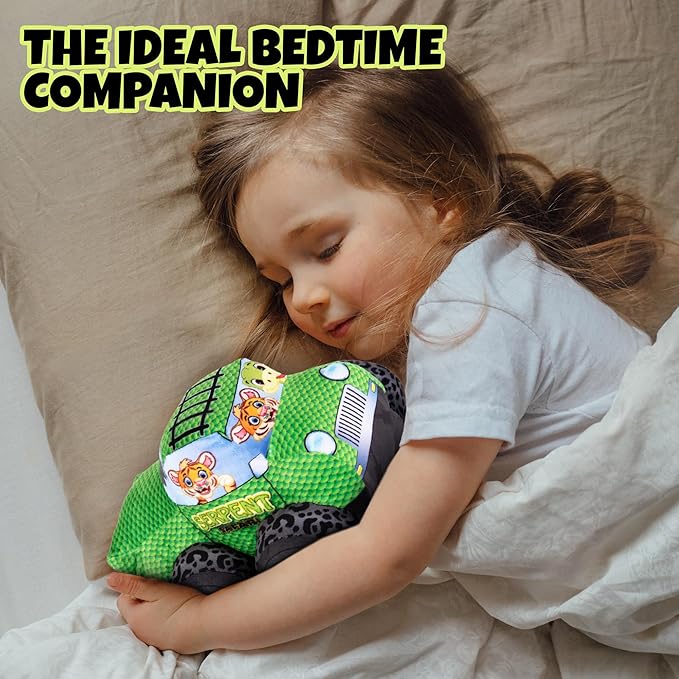 - CUTE AND PLUSH: Set your little munchkin off on a cute cuddly safari with this 8” plush Monster Truck. With a cool big-wheel unique safari-themed design, and an eye-catching mix of color to boot, it’s quickly going to become one of your tot’s favorite toys.